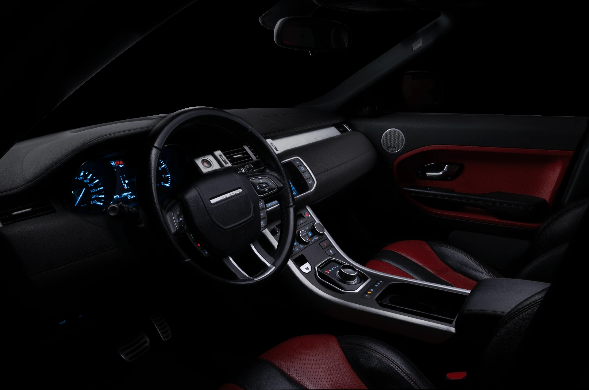 Interior shot, entire dashboard, front & rear seats, and trunk.